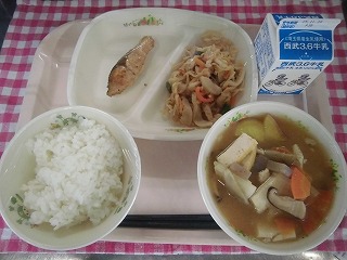 牛乳・ごはん・サバの生姜焼き・切り干し大根の炒り煮・さつま汁