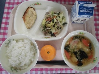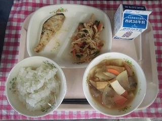 牛乳・ごはん・ブリのみそマヨネーズ焼き・切り干し大根の炒り煮・さつま汁