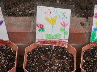 ☆ヒヤシンスは水栽培で育つことにビックリ! ☆かわいい名札もつけました