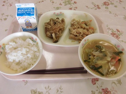 キムチスープにハンバーグ、パワーが出そうなメニューです。