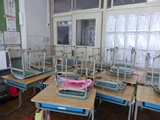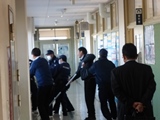 教室では犯人の侵入を防ぐために机と椅子でバリケードを作りました。