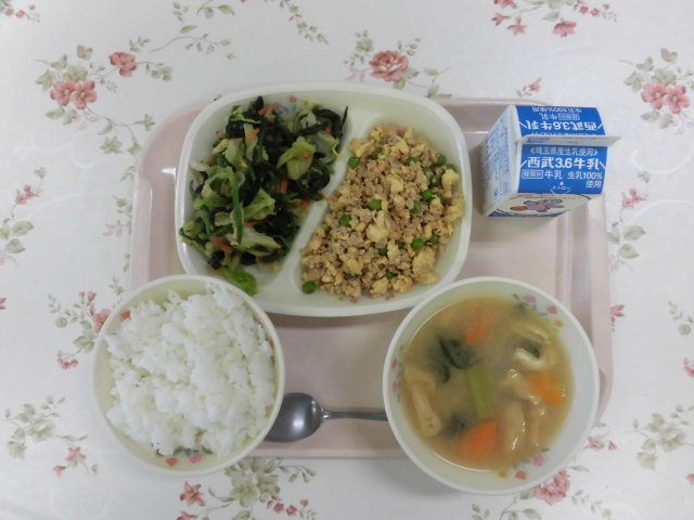 三色そぼろに使用しているのは、鶏ひき肉、たまご、グリンピースです。