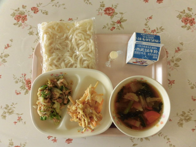 かき揚げは、さつまいも、にんじん、玉ねぎ、大豆、ちりめんじゃこが入っています。