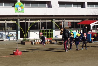 今朝は、園庭にうっすらと雪が残る中、きりん組さんは短縄とびの検定をしました。