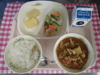 牛乳・カレーライス・イカナゲット・スティック野菜