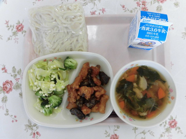 今日の給食は、食べ応えがありました。鶏肉とレバーで元気も出そうです。