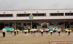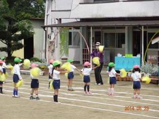 「ふなっしー」の曲に合わせて元気いっぱいに踊りました。