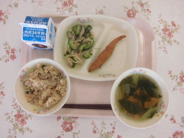 炊き込みご飯は具材をしっかり炒めて茶ご飯にまぜこんでます。