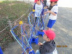 夏の間に大切に育てた朝顔のツルを、枯れる前に丁寧に巻き取り、丸く形を整えていきました。友達と相談しながら、みんな夢中になって作業していました。