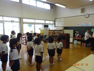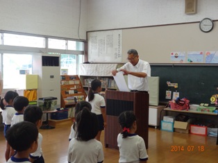 しっかりとした態度で園長先生のお話を聞くことができました。