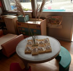 昨日の十五夜では、子ども達が粘土でだんごを作り、飾っていました。
