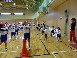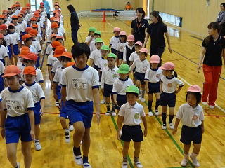 今日は、小学校と一緖に運動会の入場行進の練習をしました。