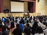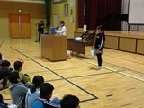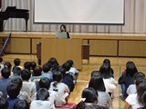 続いて1年生と4年生の代表児童が2学期を振り返っての作文を読みました。