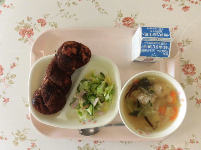 スープの肉団子は、給食室で手作りしています。
