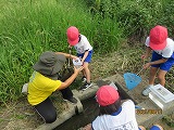 2年生が地域や保護者の皆様と一緒に、学校近くの水路に水辺の生き物探しに出かけました。小さな魚やエビ、カエル、アメンボなど、身近な生き物を夢中になって捕まえ、子供たちは大喜びでした。また、地域の方々が事前に水路の草を刈ってくださったおかげで、安全に楽しく活動することができました。こうした温かいご支援に、子供たちの学びが一層深まっています。