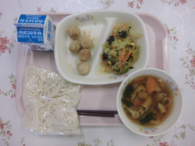 五目うどんでお肉と野菜がしっかり摂れました。