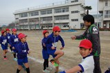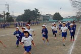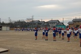 ラジオ体操の後、5分間走を、そして、長縄跳びをしました。