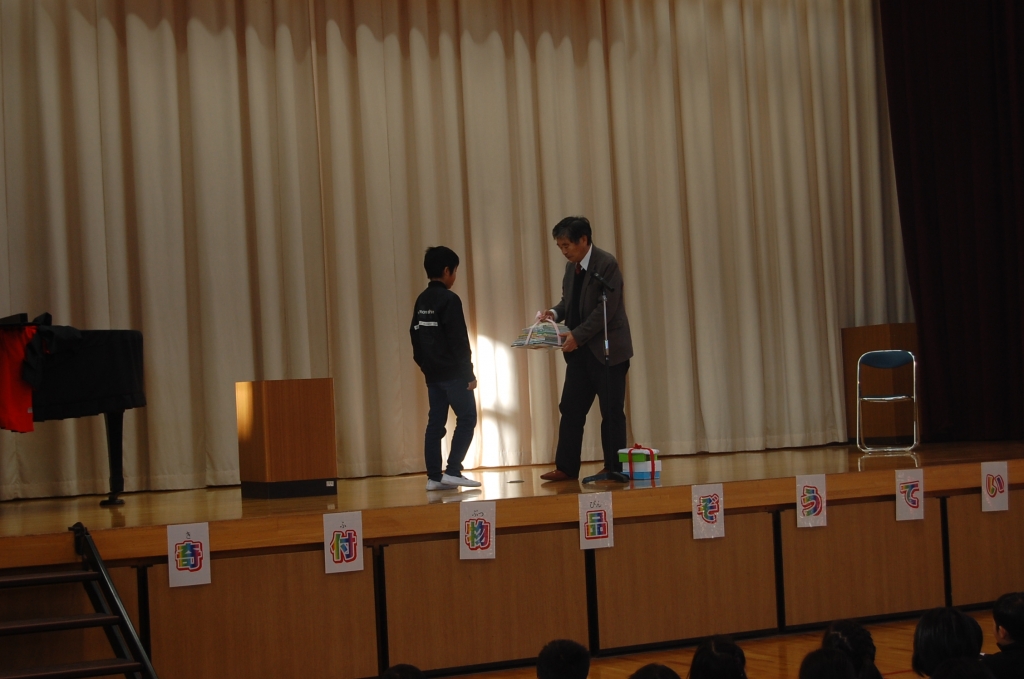 学校からは各ご家庭からいただいたティッシュとタオルをお渡しし、深緑苑さんからは本を寄贈していただきました。