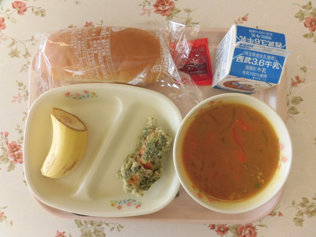今日は、昔の献立です。いつもの給食と比べると、全然違います。