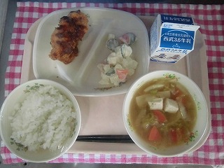 牛乳・みそカツ丼・ポテトサラダ・吉野汁